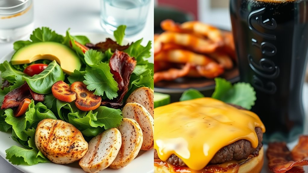 When choosing a ketogenic diet, understanding the difference between clean keto and dirty keto is vital. Your approach to meal planning and focus on food quality can markedly influence your results, health, and overall experience. Clean keto emphasizes consuming whole, minimally processed foods rich in nutrients, while dirty keto often involves eating more processed foods that meet the macronutrient targets but lack nutritional value. If you prioritize your health long-term, clean keto offers a more sustainable and nourishing way to achieve ketosis, as it encourages fresh vegetables, healthy fats, and high-quality proteins. This means reading labels carefully, cooking from scratch when possible, and choosing whole foods over convenience items. Additionally, focusing on food quality can help reduce inflammation and support better metabolic health over time. Meal planning plays a pivotal role in maintaining a clean keto lifestyle. You’ll want to plan your meals around nutrient-dense ingredients like avocados, nuts, seeds, fatty fish, and leafy greens. This not only helps you stay within your carbohydrate limits but also guarantees you’re getting essential vitamins and minerals. When you focus on food quality, you’re less likely to fall into the trap of relying on processed snacks or keto-friendly junk foods that are often high in unhealthy fats, artificial additives, and preservatives. Proper meal planning makes it easier to avoid hidden sugars and unhealthy oils that are common in many processed foods labeled as “keto-friendly.” Ultimately, the key is to consider your long-term health goals. If you want to lose weight, improve metabolic health, or simply feel better, clean keto’s focus on food quality and mindful meal planning makes it the smarter choice. It encourages you to develop healthier eating habits that are sustainable and nourishing. While dirty keto might seem easier initially, the potential drawbacks in terms of health and energy levels can outweigh the short-term convenience. By choosing high-quality foods and planning your meals carefully, you’re setting yourself up for success that lasts far beyond your initial weight loss goals.