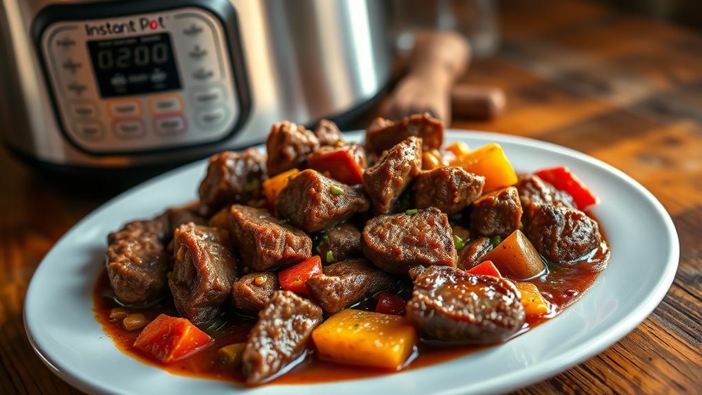 Overcooking can turn your meal into mush, so stay vigilant. To prevent this, always follow your Instant Pot’s safety guidelines and use the correct pressure and time settings. Keep an eye on natural pressure release, and don’t forget to make ingredient substitutions carefully to avoid overcooking delicate items. Your careful attention keeps your dish perfect, ensuring a satisfying meal every time without sacrificing flavor or texture.