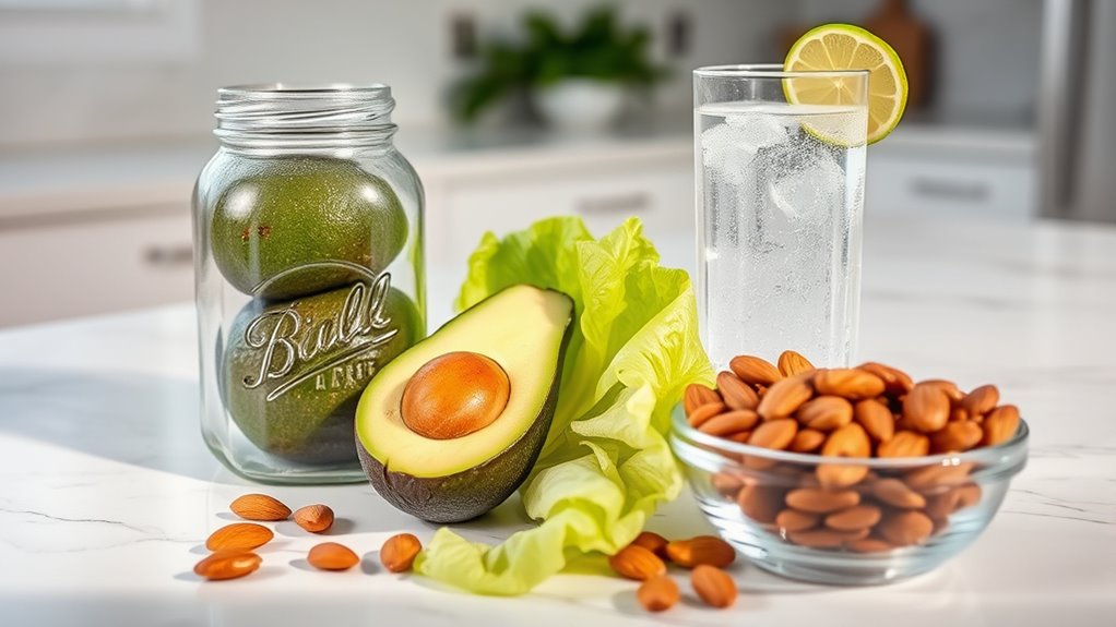 To manage keto side effects, start by staying well-hydrated and replacing electrolytes with salty foods or supplements to prevent dehydration and cramps. For keto breath, practice good oral hygiene and stay hydrated; it usually improves over time. To ease digestive issues, increase fiber-rich vegetables and consider magnesium supplements. If you balance hydration and electrolytes, you’ll feel more comfortable during your progression. Keep exploring for more tips to make this journey smoother.
