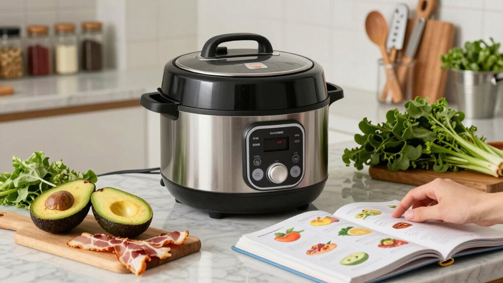 Think of your multicooker as a trusty ship sailing through the keto seas. With a clear map—your meal plan—you steer with the right ingredients, set the sails—your settings—and adjust the course as needed. Mastering these small adjustments guarantees your keto journey stays smooth and steady. Keep your eyes on the horizon, and soon you’ll be steering flavorful, perfect meals with confidence, turning every cooking adventure into a triumphant voyage.