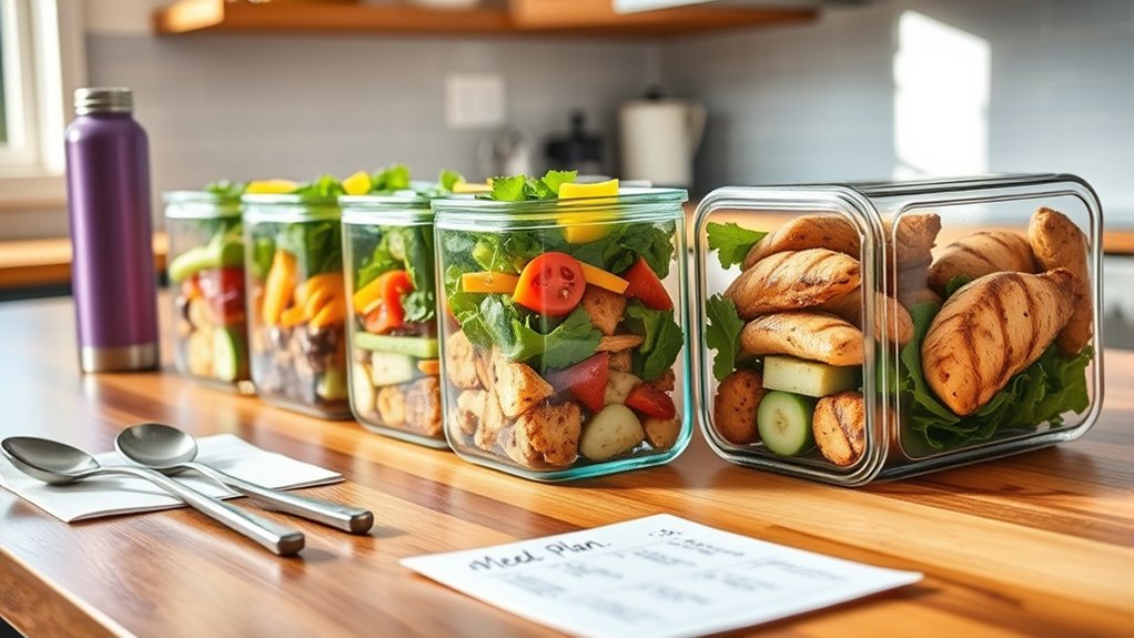 Think of meal prepping as building a fortress for your goals. It helps you control portions and makes calorie counting easier, giving you a clear view of what you consume. By prepping meals, you avoid impulsive choices, stay on track, and manage your intake more effectively. This consistency supports steady progress toward your weight loss goals, turning your intentions into tangible results.